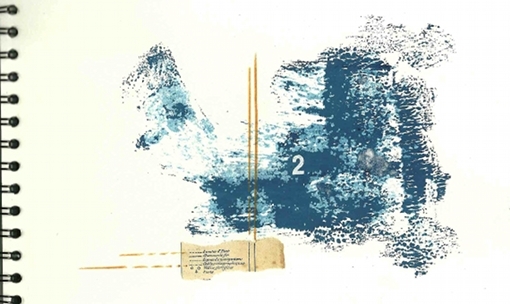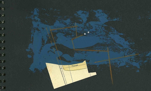 La gravure en taille douce que je travaille ensuite dans mon atelier est couturée (coudre l’image c’est déborder et retourner la surface gravée) et j’y ajoute des collages de vieux papiers familiaux.